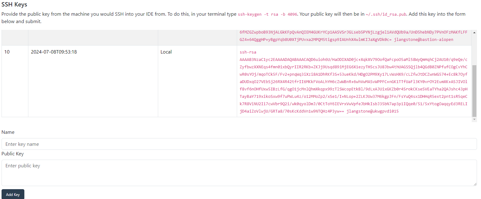 A tool for generating key pairs for accessing the Personal IDEs using ssh.