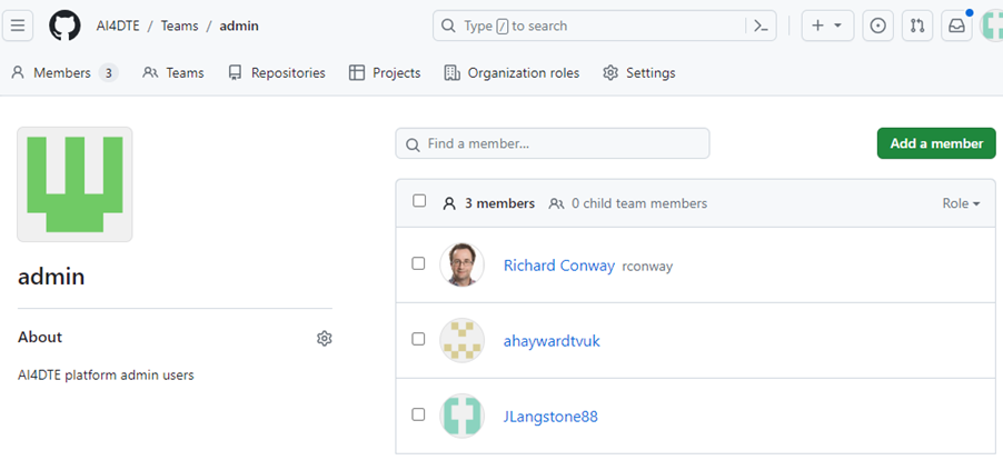 To invite members to an existing team, click on a Team in the table then click on Add a member.