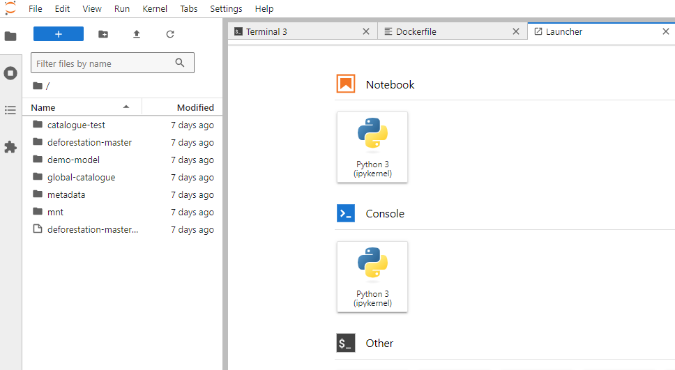 To connect via the JupyterLab, paste the JupyterLab URL in the web browser. You should see on the left the repositories from your workspace that have been cloned into the IDE.