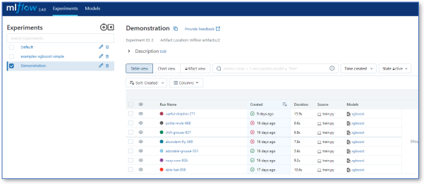 MLflow user interface#