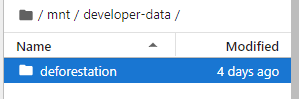 To access training data from the S3 bucket, the IDE is automatically synced to it. Every IDE has a /mnt folder and inside this is access to the contents of the training data. Simply replace the paths in your scripts to $HOME/mnt/path-to-bucket-data, e.g. $HOME/mnt/developer-data. In JupyterLab view you can easily see the S3 structure within each bucket, as seen below.