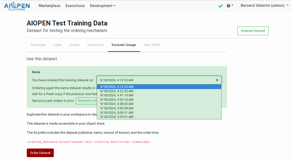 Because the ordered datasets are located in the workspace bucket, the files may be altered (overwritten, deleted). For this reason it is possible to order the same data multiple times. Each time the new copy will be available in a new path.