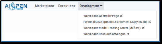 In addition, user having a developer profile also see get a Development menu in the navigation bar that gives access to the development tools described in the Developer Manual. Selecting any of these entries opens the target tool in a new page.