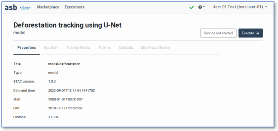 Authenticate in the AIOPEN Service, search for the appropriate model and access its Details page. This includes an Execute → button in its upper-right corner.