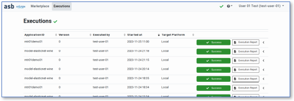 The past and current model executions may be monitored in the Executions page, which also gives access to the individual execution reports.