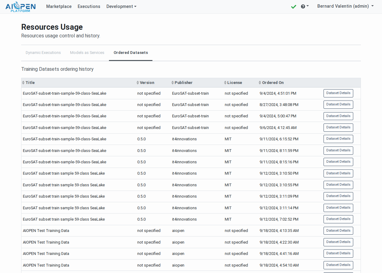 Training Data published on the Marketplace may be discovered by any user. Developers have the possibility to order these datasets to train new models.